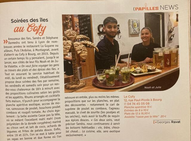 Le Cofy ouvre également son restaurant le vendredi et le samedi soir et vous invite à découvrir une cuisine des îles pleine de saveurs et de soleil
